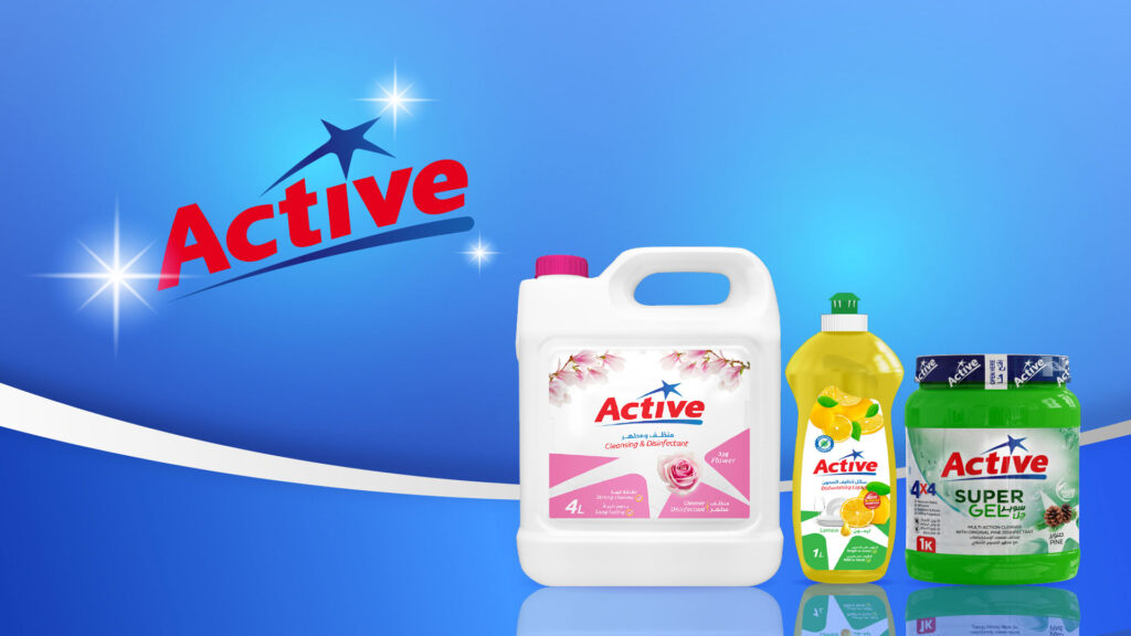 Active is a detergent line tailored to house use like dishwashing- super gel – cleansing & general disinfectant.